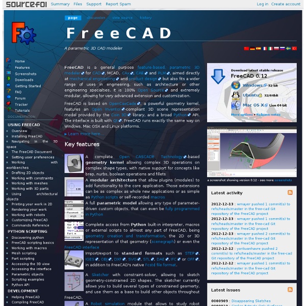 FreeCAD is a free and open-source (under the LGPLv2+ license) general-purpose parametric 3D CAD modeler. FreeCAD is aimed directly at mechanical engineering and product design but also fits in a wider range of uses around engineering, such as architecture or other engineering specialities. ... Read Article